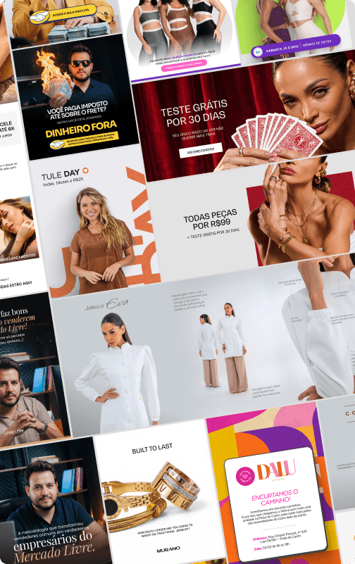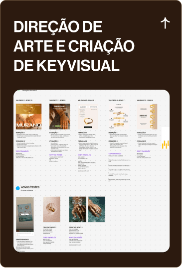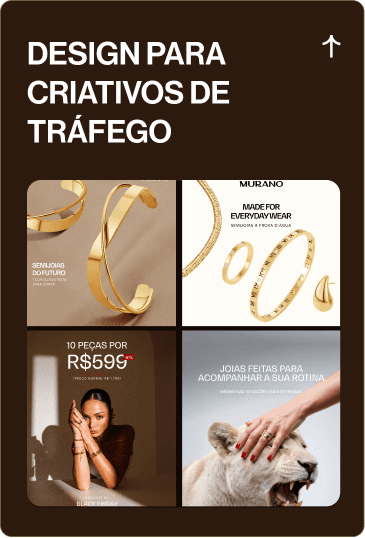 Desenvolvemos cada peça pensando na estratégia primeiro, na estética depois. Design que serve ao negócio.